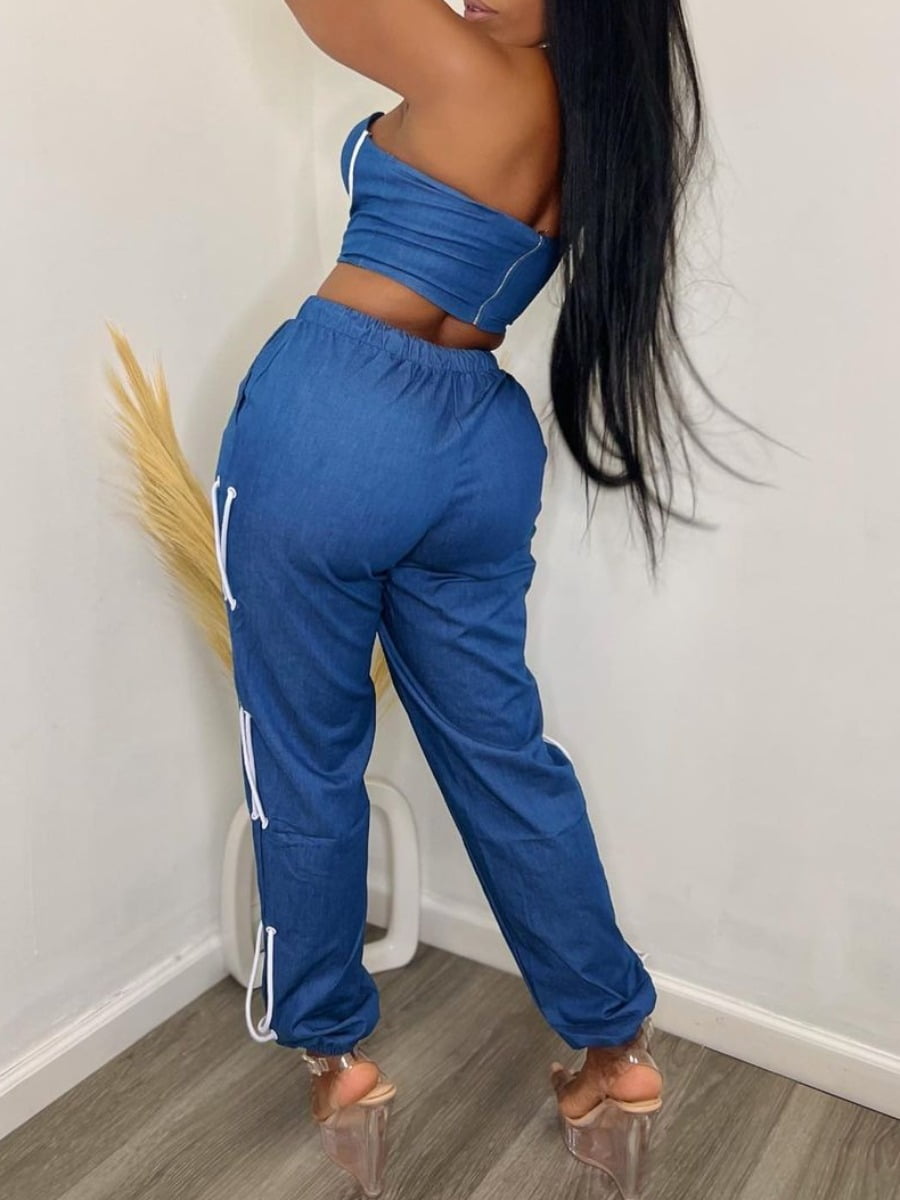 Lovelywholesale Tube Top Back Zipper Drawstring Pants Set Walmart Com